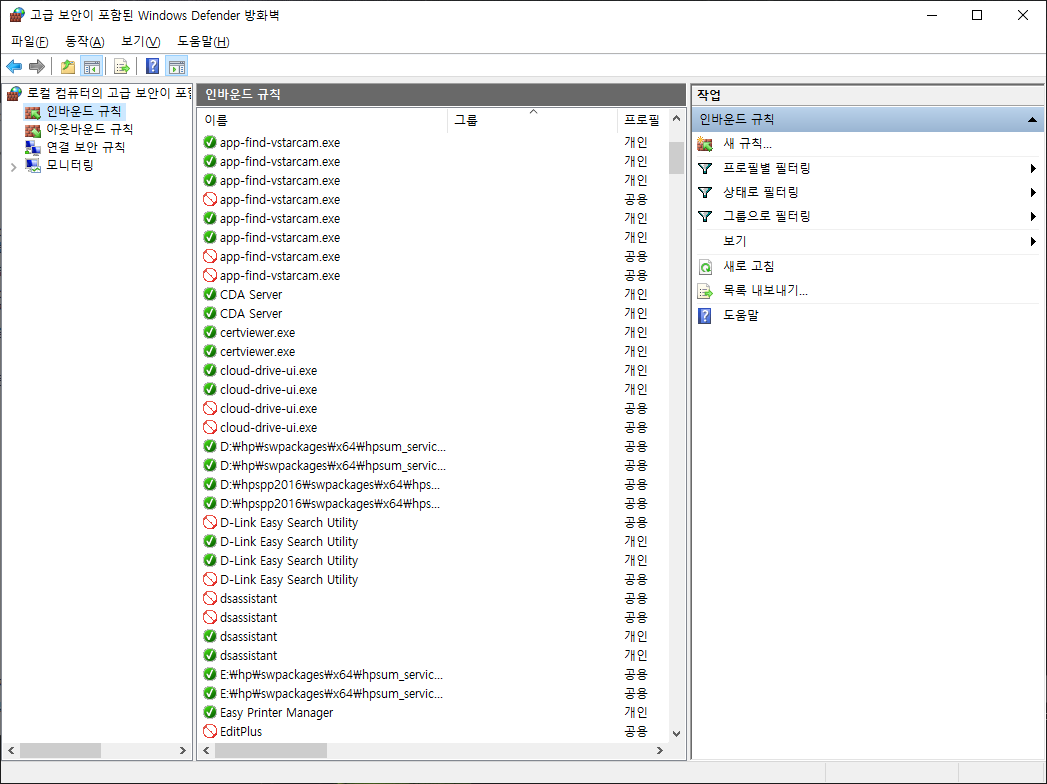 고급 보안이 포함된 Windows Defender 방화벽이 실행됩니다.