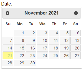 jQuery UI를 이용하여 달력에서 선택하여 날짜를 입력할 수 있다.