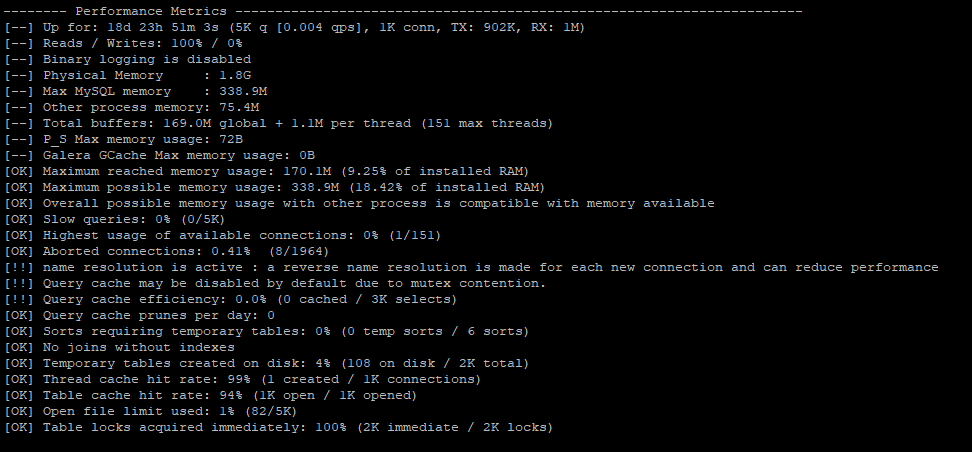 이제 perl 을 이용하여 MySQLTuner 를 실행합니다.