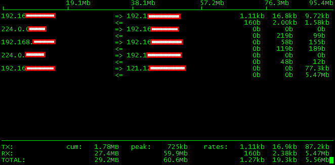 아래 표시되는 TX / RX / TOTAL 은 NIC로 들어온 실제 데이터량