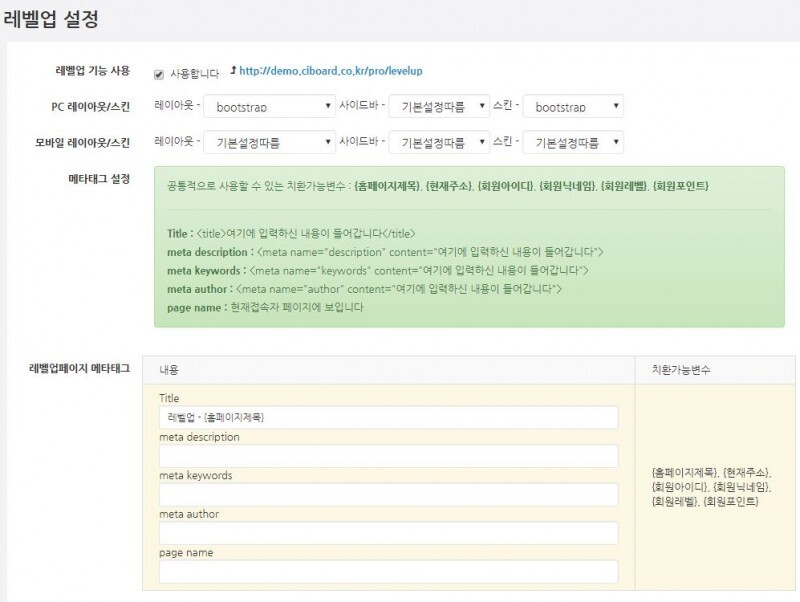 http://demo.ciboard.co.kr/pro/admin/service/levelupcfg