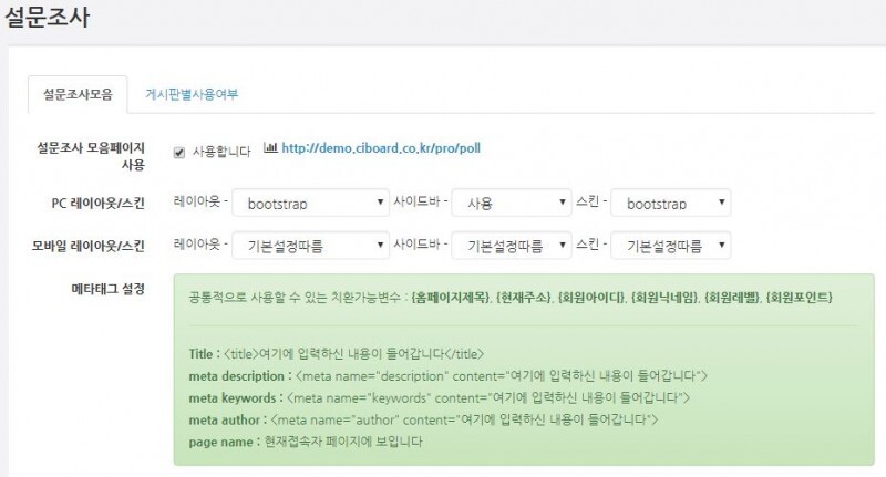 3. 관리자 페이지 > 기타기능 > 설문조사 에서 환경설정 후에 사용이 가능합니다.