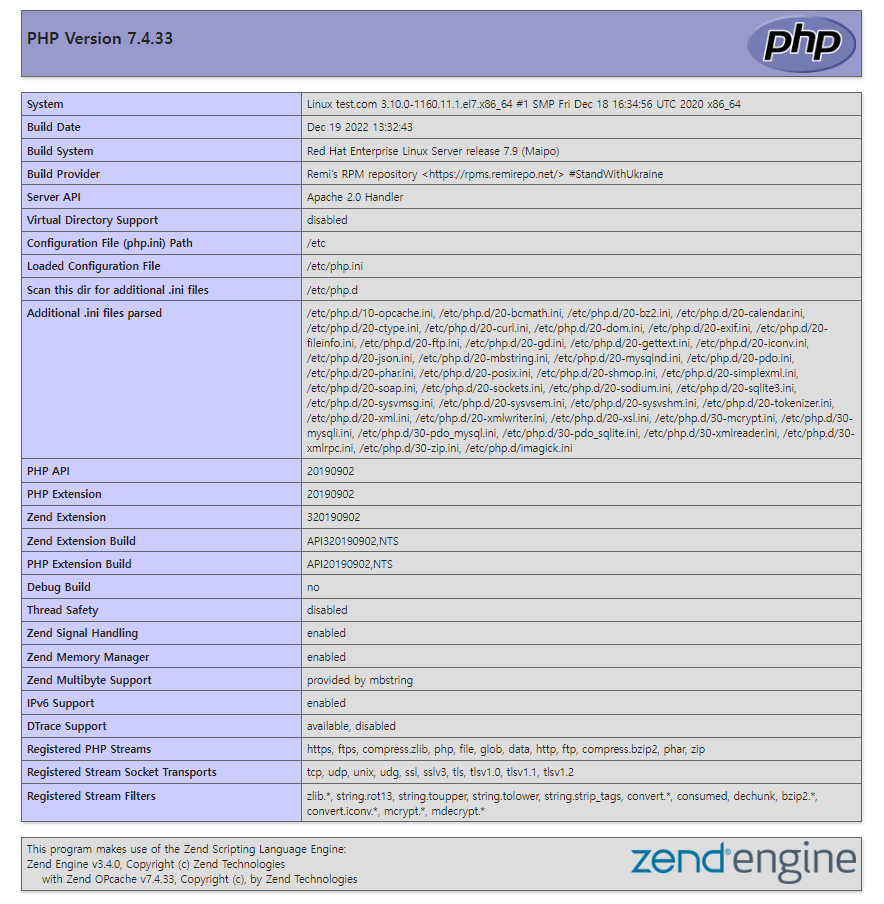 ■ phpinfo(); 출력을 합니다.