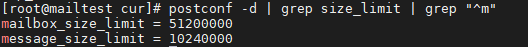 따로 설정을 하지 않을 경우 유저당 메일박스가 50M 메일 사이즈가 10M로 제한된다.