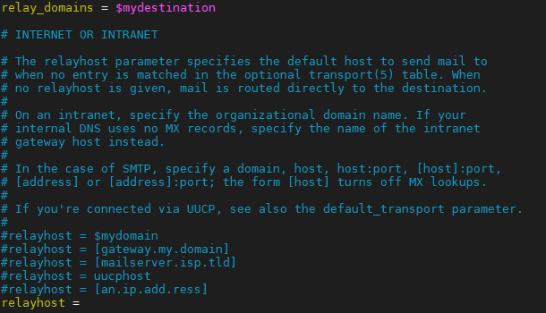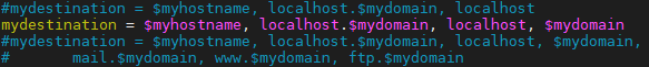 mydestination = $myhostname, localhost.$mydomain, localhost, $mydomain