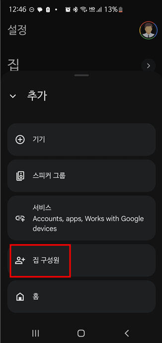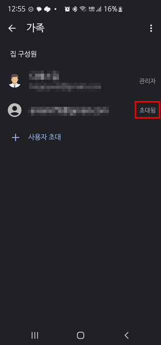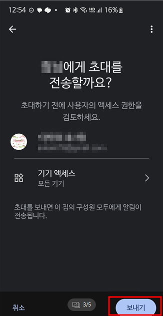 구글 앱중에 "Google Home"을 설치하고, 가족구성원 초대장 발송하기할 수 있다