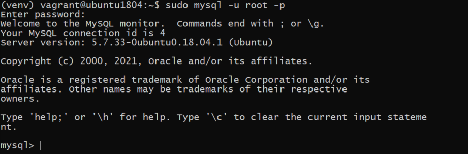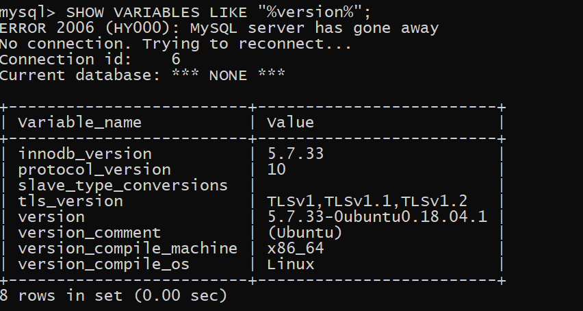 버전을 확인한 결과! mysql 버전은 5.7.33 입니다.