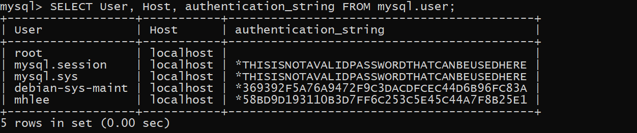 먼저 현재 mysql의 계정(User) 정보를 확인하겠습니다.
