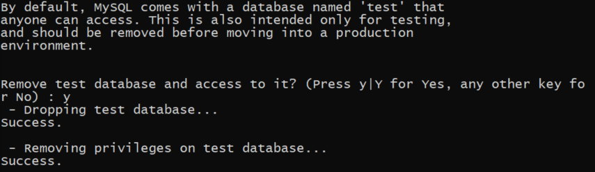2.3 루트계정을 원격지에서 허용할건지에 대한 질문인데 저는 Y를 선택하여 허용하지 않았습니다.
