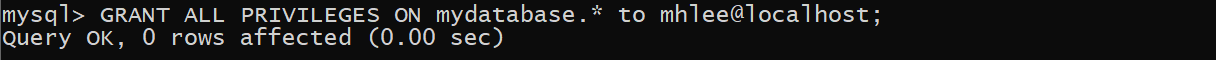 GRANT ALL PRIVILEGES ON mydatabase.* to mhlee@localhost;