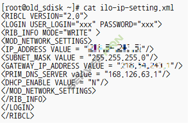 # vi ilo-ip-setting.xml