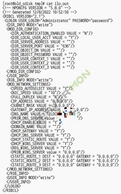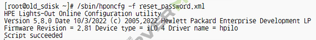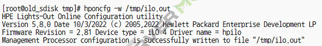 # hponcfg -w /tmp/ilo.out
