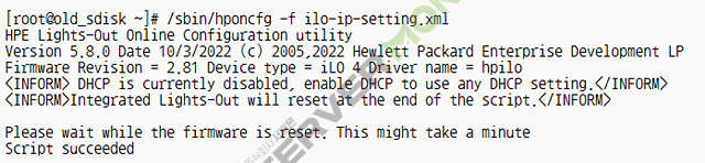 # /sbin/hponcfg -f ilo-ip-setting.xml